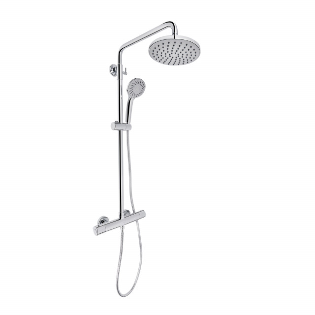 Душова система термостатична Qtap Sloup 57103ONC - естетичне та практичне рішення в одному виробі. Вона виготовлена з якісної латуні, нержавіючої сталі та міцного пластику, що не підпадають під вплив корозії. Система виконана з хромованою глянцевою поверхнею, обладнана змішувачем, а також двома видами душу - ручним та верхнім. Перемикання між споживачами здійснюється за допомогою дивертора на корпусі змішувача. Виріб стане яскравим акцентом в інтер'єрі будь-якої ванної кімнати.