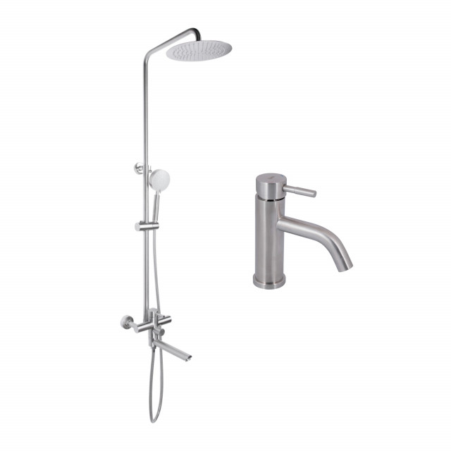 Комплект для душевої Душова система Aria 1033, Nickel (k35) на три споживача LDARI1033NKS46109 Lidz+Змішувач для раковини низький Aria 0011F, Nickel (k35)