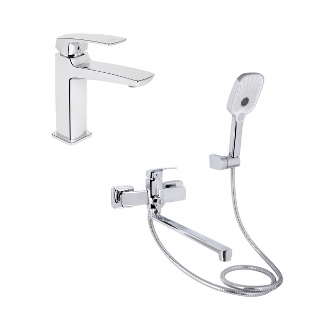 Акційний набір для Ванної кімнати Qtap Tern Змішувач для раковини QTTER2701CRM47584 Chrome+Qtap Tern Змішувач для ванни QTTER260CRM47587 Chrome