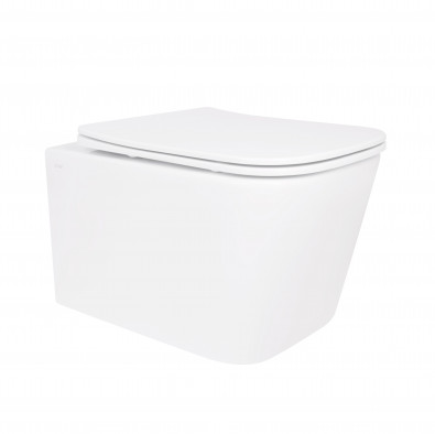 Унитаз подвесной Crow Rimless 485х340х330 мм, White, с сиденьем Slim Duroplast/ Soft-close/ Quick Release QT05335171RW Qtap