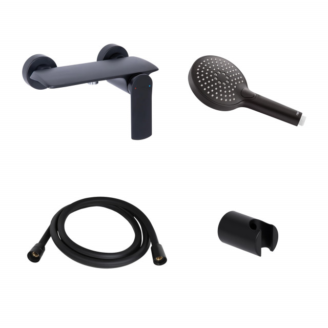 Акционный набор Qtap: Смеситель для душа Slavonice QTSLA266BLM45908+Лейка Rucni QTRUCA120O3KBB+Шланг Hadice QTHADPVCSQ160B+Держатель QT829910842854OB