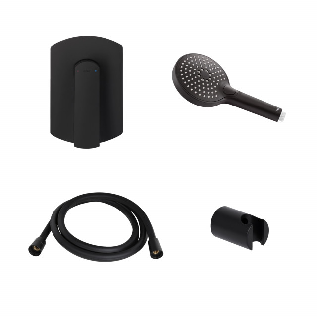 Акционный набор Qtap: Смеситель для душа Slavonice QTSLA267BLM45903+Лейка Rucni QTRUCA120O3KBB+Шланг Hadice QTHADPVCSQ160B+Держатель QT829910842854OB